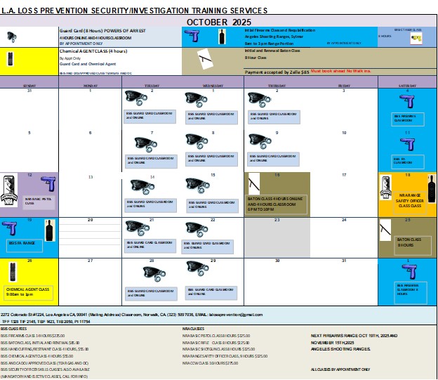 los Angeles Loss Prevention is a fully licensed in CA for Investigations (PI11754) and Security Training company. We specialize in training for security guards.