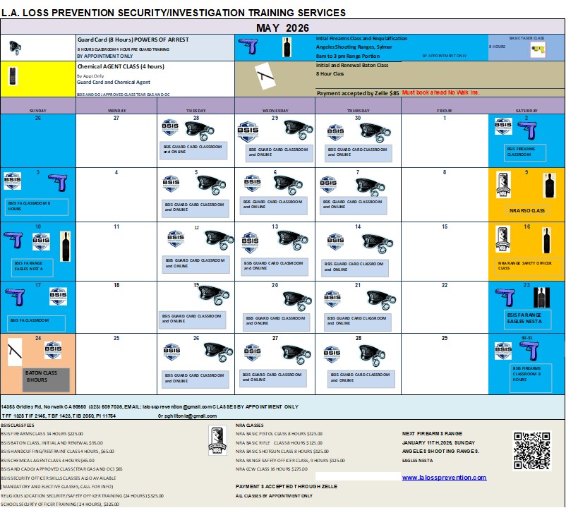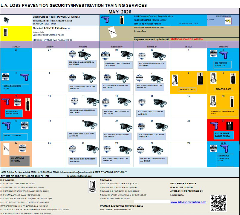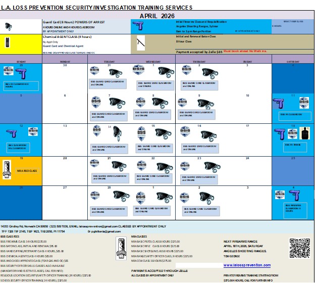los Angeles Loss Prevention is a fully licensed in CA for Investigations (PI11754) and Security Training company. We specialize in training for security guards.